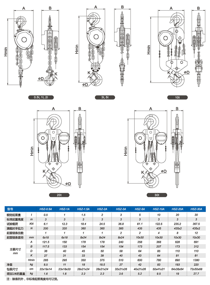 標準型手拉葫蘆HSZ-A620手拉葫蘆(0.5t-30t)