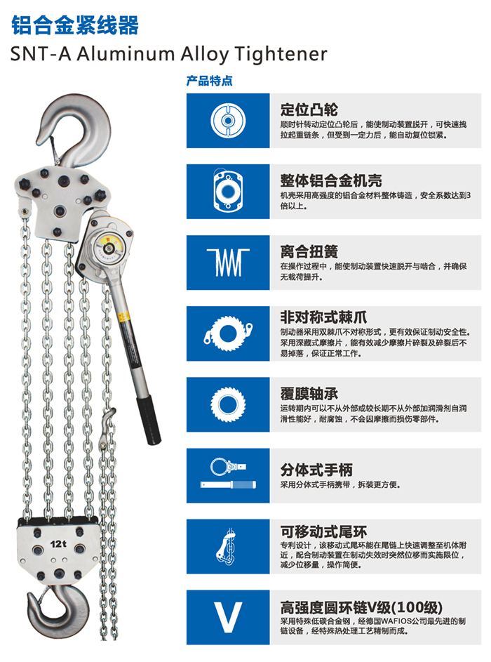 8.起重鏈條是特殊合金鋼制作并經過熱處理,不能私自進行焊接或改裝。