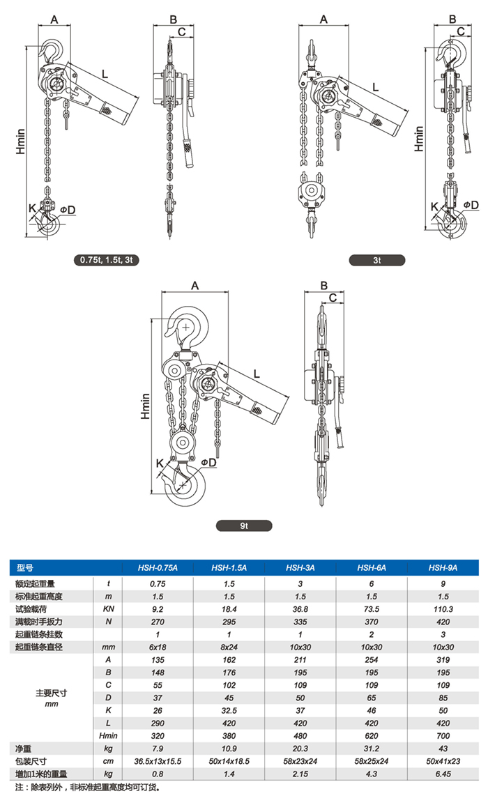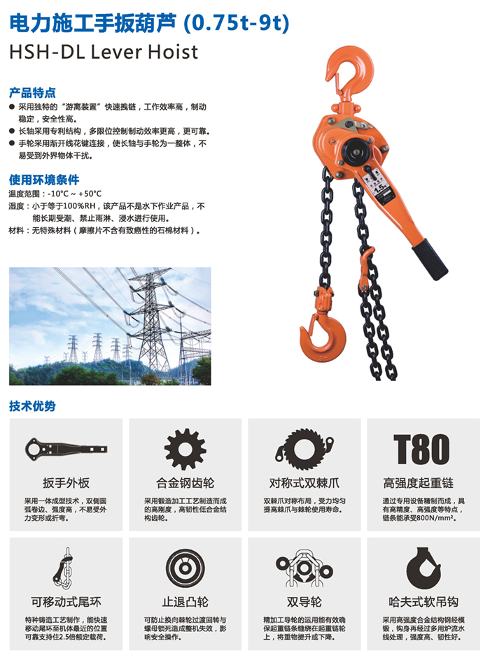 8.起重鏈條是特殊合金鋼制作并經(jīng)過熱處理,不能私自進行焊接或改裝。